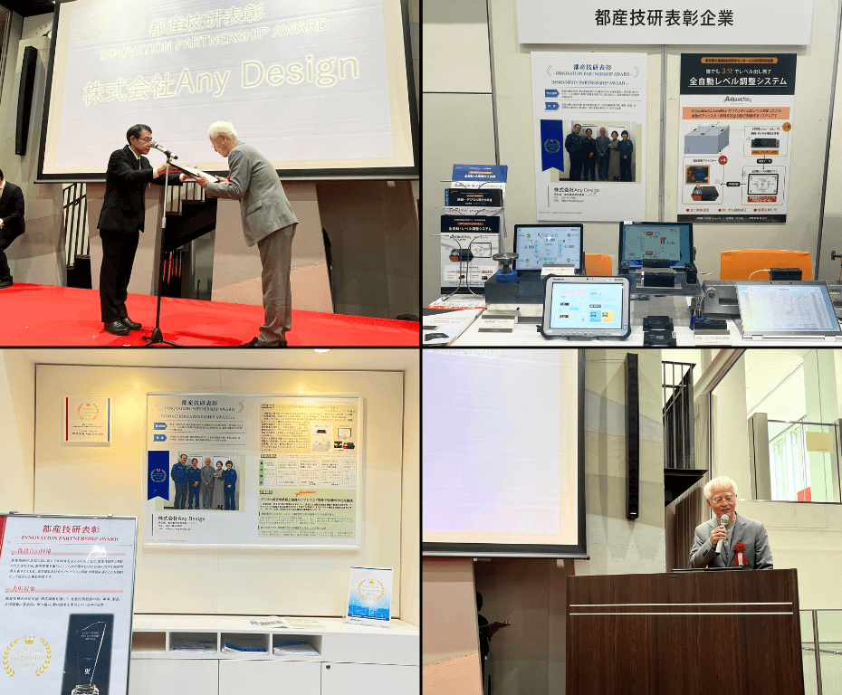都産技研と2016年から8年間にわたる共同研究や技術支援に取り組み、世界初の「全自動・水準器校正装置 CalibMan」や、日本初の「全自動レベル出し調整装置 AdjustMan」を含む3機種を次々と製品化した高い技術開発力が認められました。
